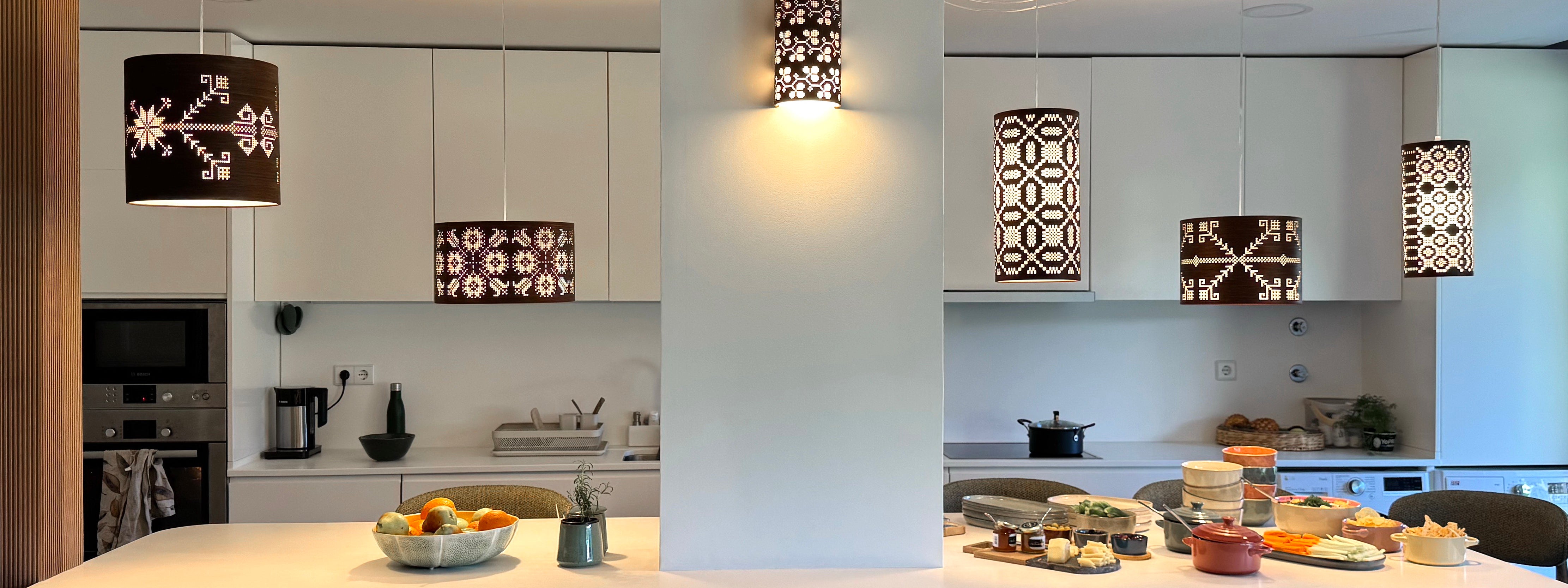 We create lamps, gifts and stories. We are inspired by authentic heritage and its personal touch. Improvisations based on folk art and folklore motifs give birth to well-wishing waiting rooms for people and their homes. Soft wood coasters for morning coffee, puzzles for guests waiting for tea, notebooks for bright thoughts and wishes, openwork for window and wall decoration, book tabs for reading hours, magnets with fairy tales and verses, wooden home and office accessories, non-amber souvenirs from Lithuania.